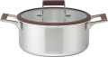 熱伝導、保温性、耐久性に優れた全面3層ステンレス鋼 スタイリッシュなデザインと、洗練されたブラウンカラーがアクセント。熱伝導の良いアルミニウム合金と保温性に優れたステンレス鋼をサンドイッチした構造で、それぞれのメリットを活かした仕様です。