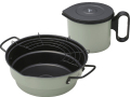●材質/鍋(本体・ハンドル・揚げアミ)・ポット(本体・蓋・中皿アミ枠):鉄(シリコンコート加工)、ポット漉しアミ:ステンレススチール、ポットハンドル:フェノール樹脂