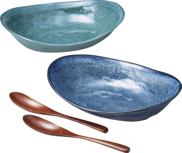 ●セット内容/カレー鉢(約18.5×24×6cm)・木製スプーン×各2