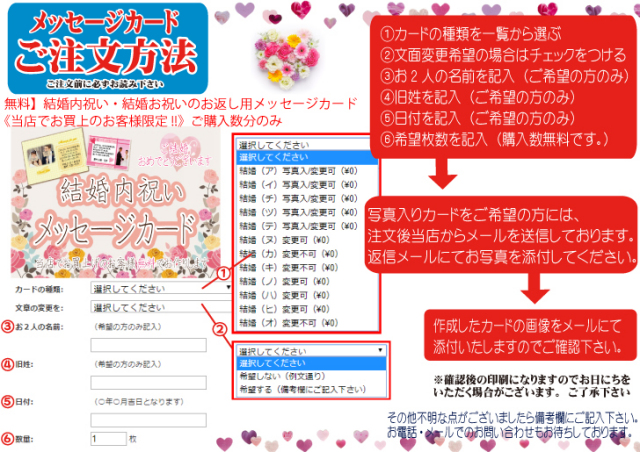 【無料】 結婚内祝い・結婚お祝いのお返し用メッセージカード《当店でお買上のお客様限定!!》ご購入数分のみ